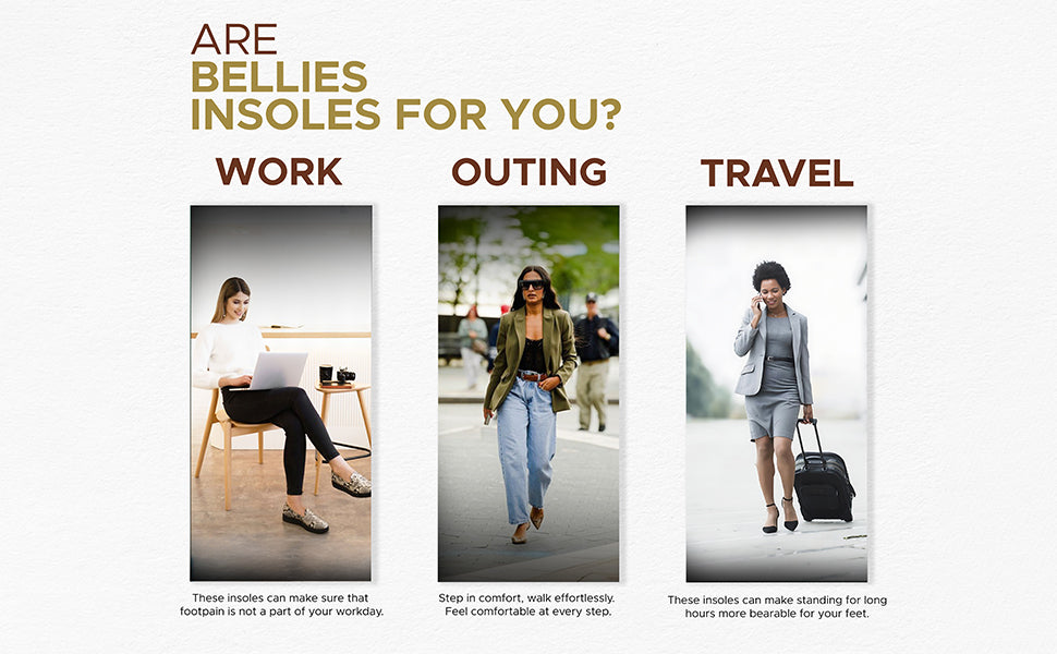 - Protection Against Shoe Bites: Irritating shoe bites can ruin your day. Bellies Insoles act as a barrier between your feet and the shoe, preventing those painful shoe bites and ensuring your feet stay irritation-free.