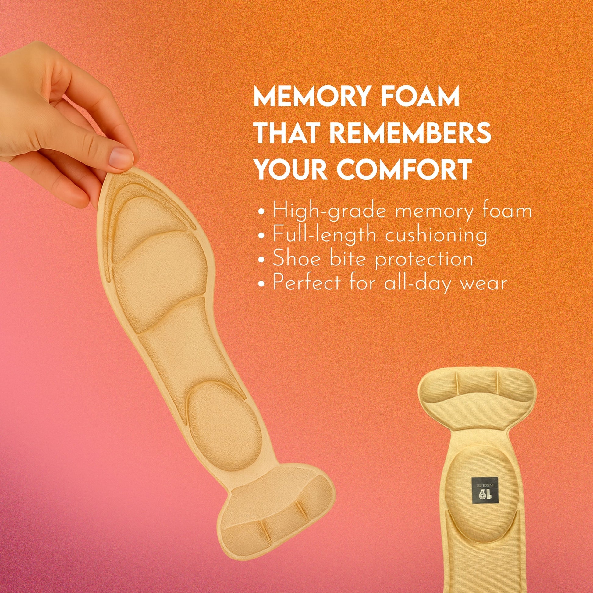 - Material: Our Bellies Insoles are crafted from high-quality, highly elastic memory foam that provides the perfect balance of softness and support. They are designed to withstand the rigours of daily wear, ensuring longevity.