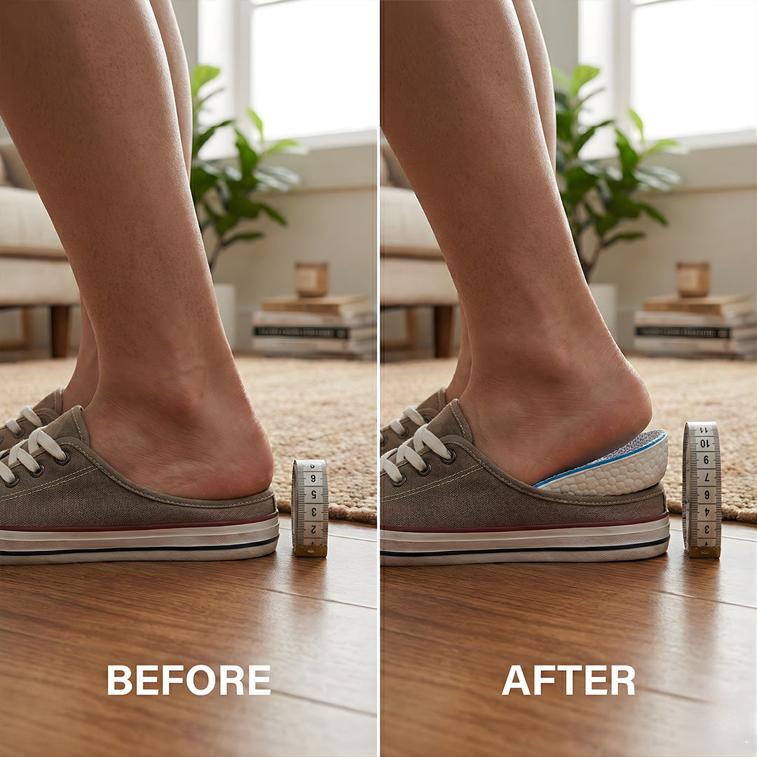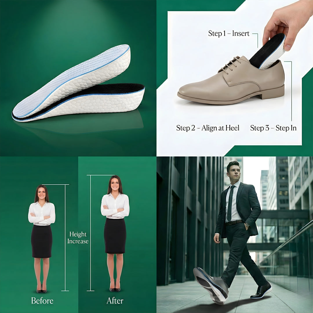 Add up to 4 cm height instantly while maintaining natural walking posture. Cushioned heel lift, sweat resistant fabric and shock absorbing base for everyday confidence.